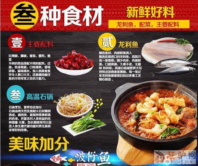 沈阳渔官人啵啵鱼加盟店,采用的深海龙利鱼鱼肉细嫩,无腥味和乱刺赶~驴~网。低热量,低脂肪的食物,健康又有营养是老少皆宜的美味,啵啵鱼不需要传统的油烟厨房欢迎www.ganlv5.com。无需大厨,3-5平就能制作食物,一个灶台几个砂锅,用石锅慢火细炖,加入配菜在最后才加入秘制汤汁提味配上鲜蔬,嫩滑的鱼肉加上浓稠的汤汁,啵啵鱼已经发出啵啵的声音嘴里跳舞啦来自www.ganlv5.com。2019年开年优惠,现在考察参观,即赠送核心设备,欢迎来电咨询赶驴网www.ganlv5.com。